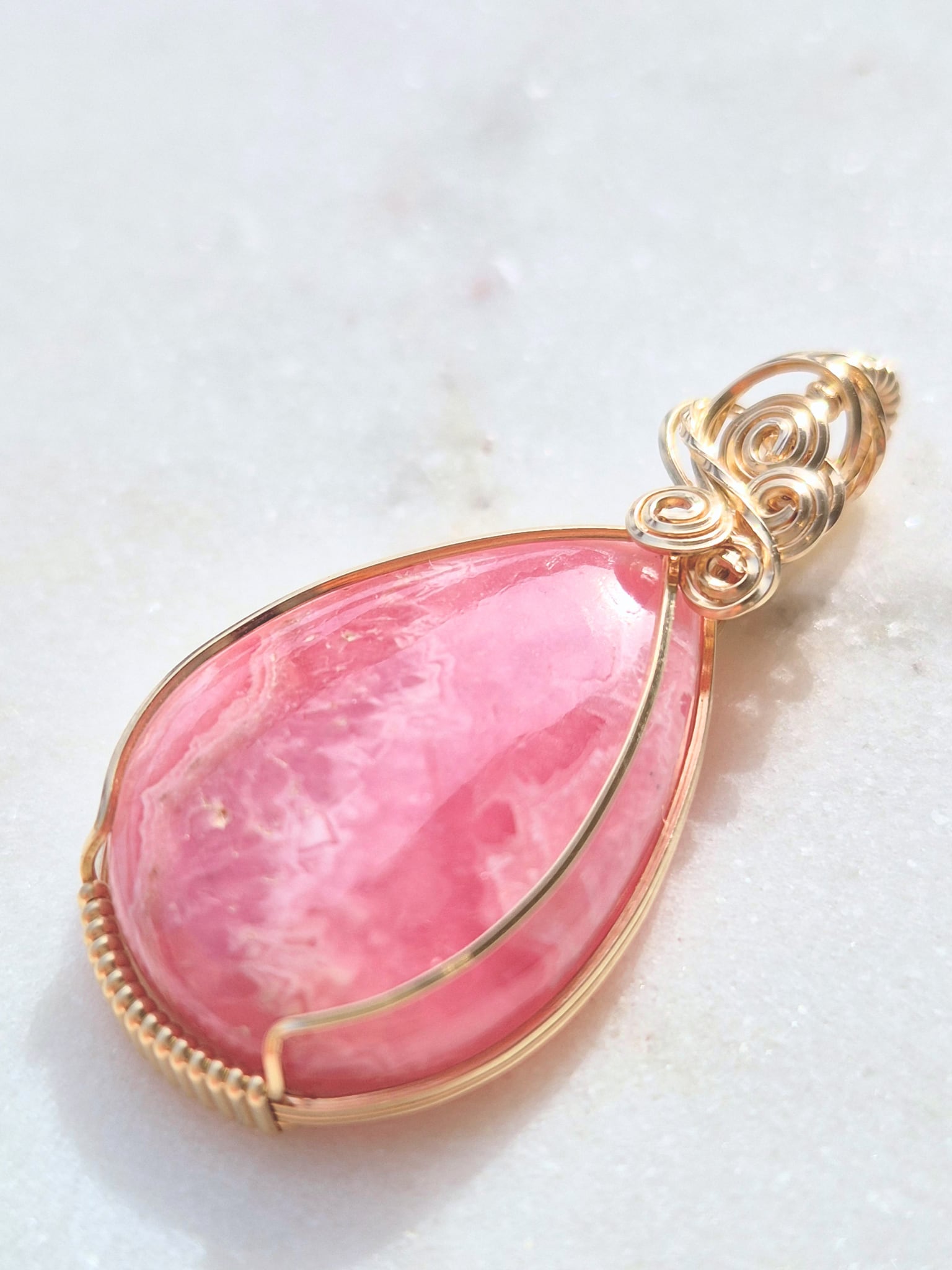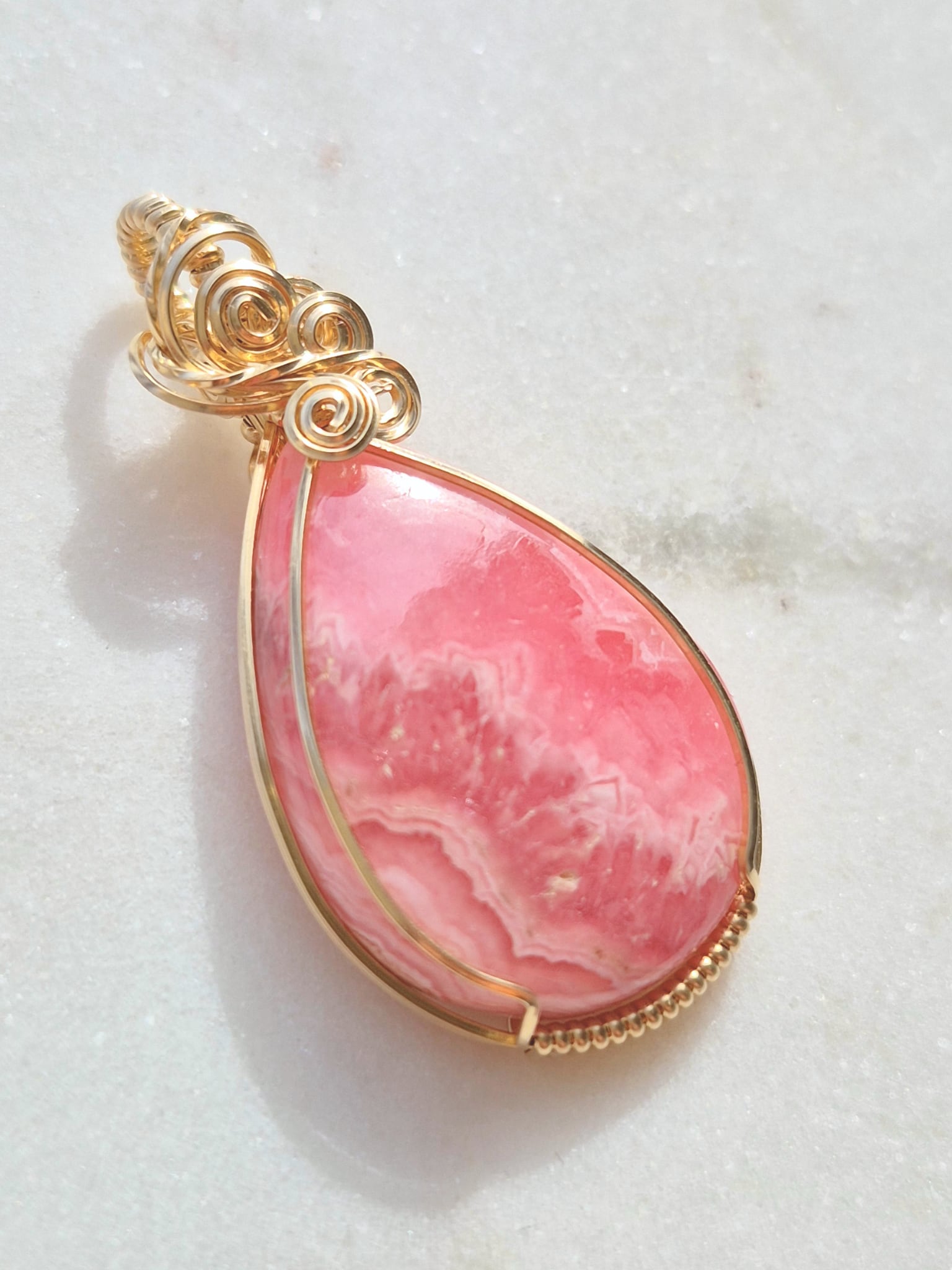 【天然石】ロードクロサイト縞あり(インカローズ)ペンダントトップ