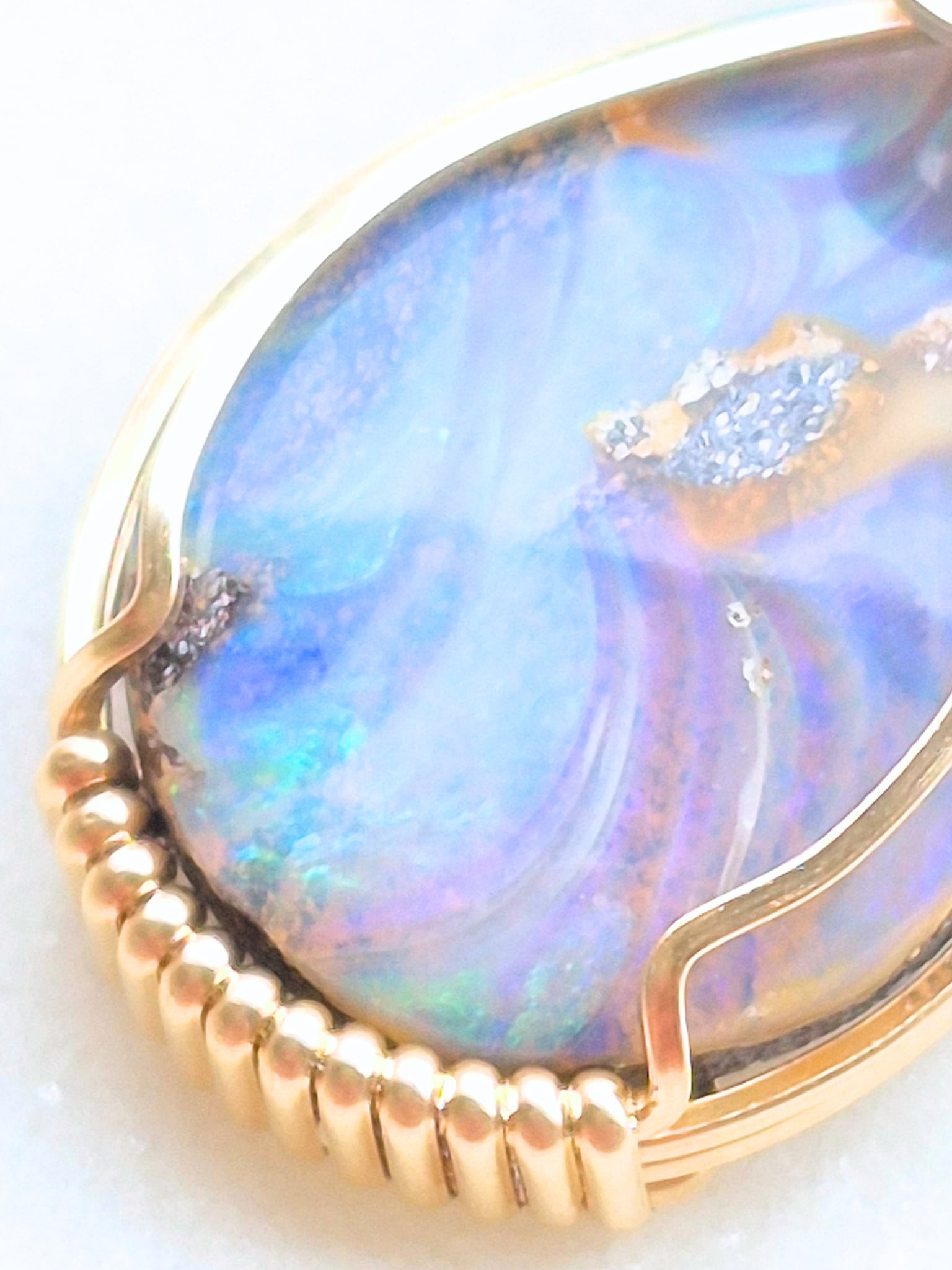 ボルダーオパールではこの光の層が岩肌