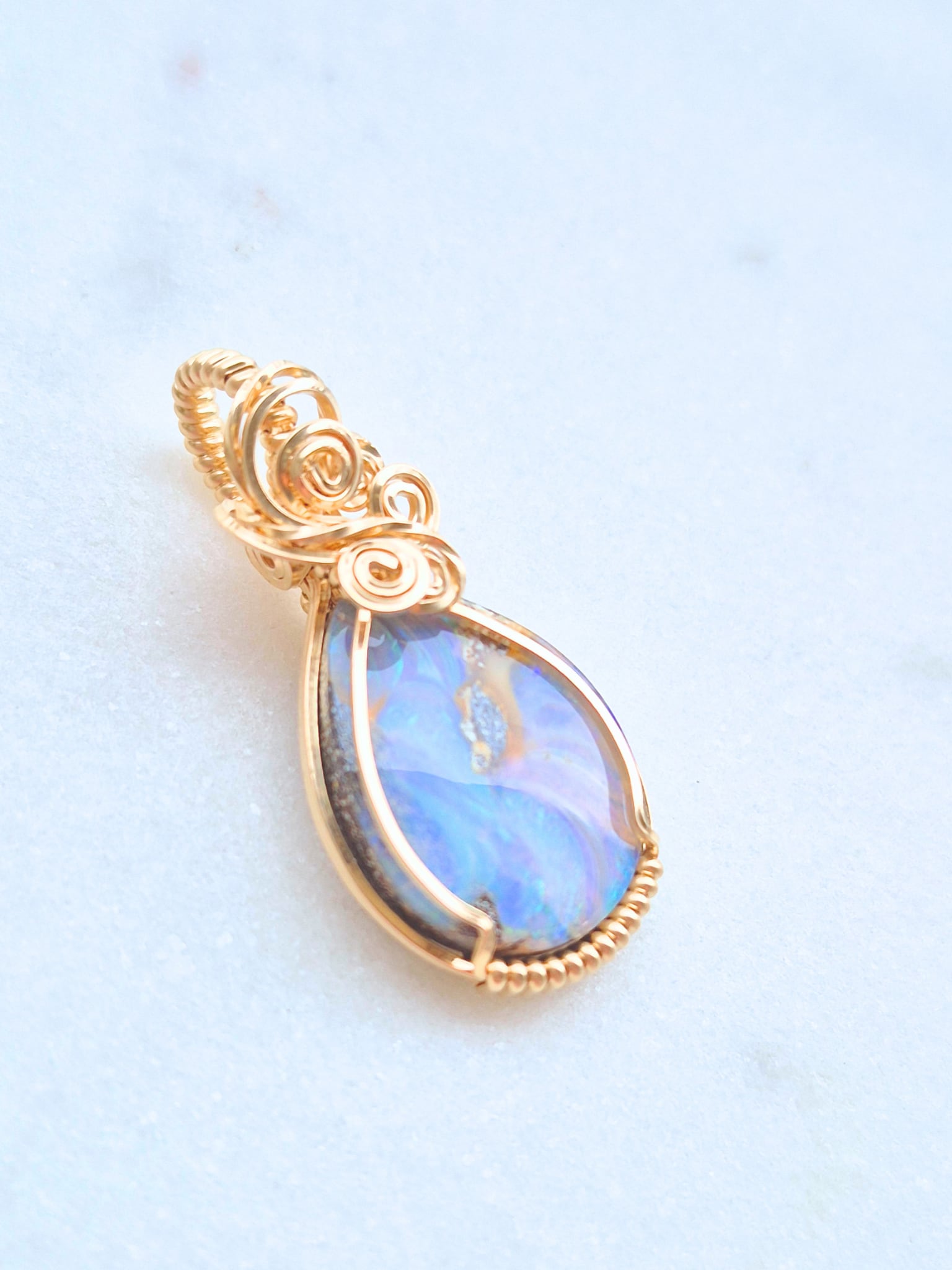 天然石のボルダーオパールを14KGFワイヤー