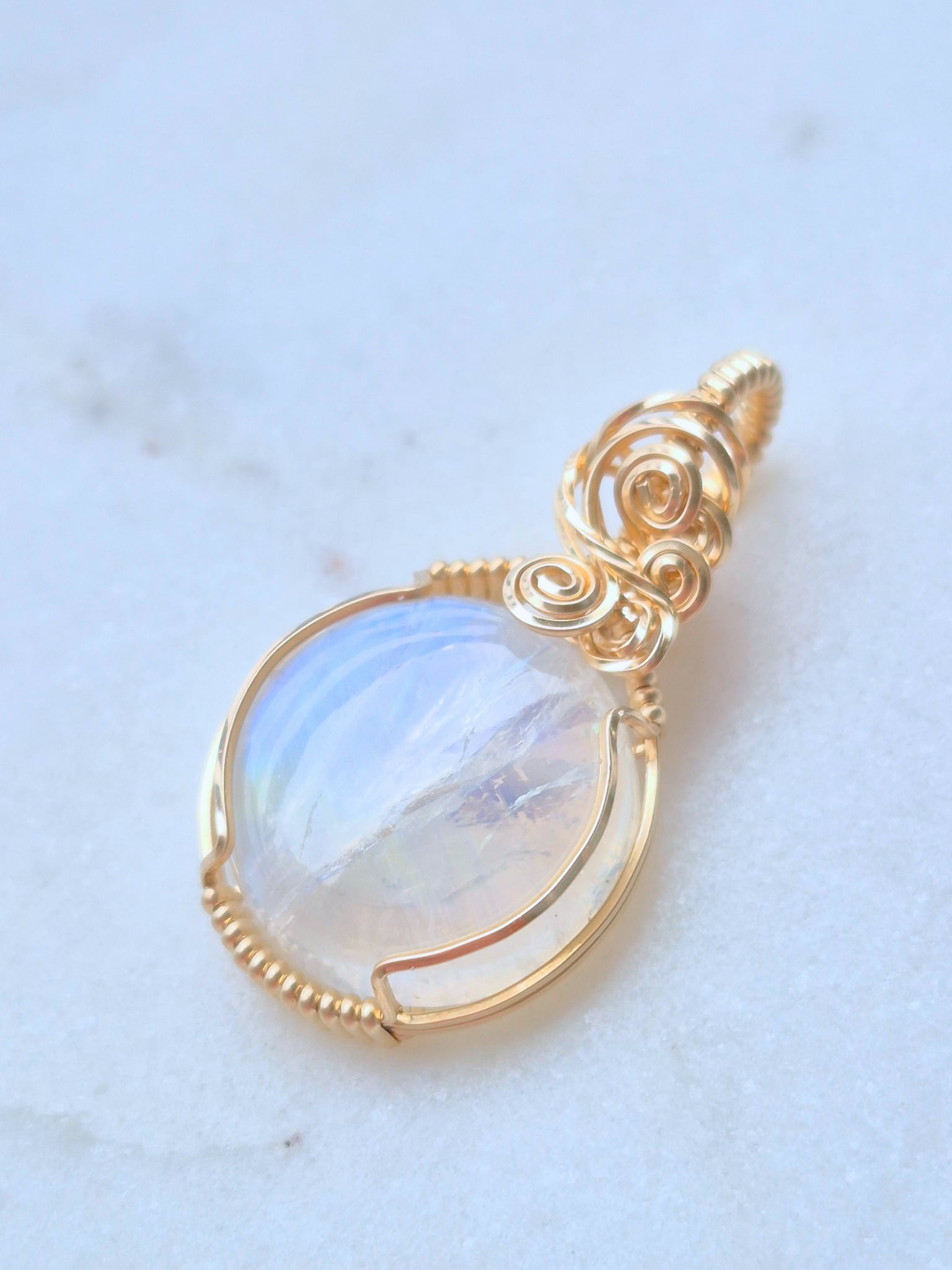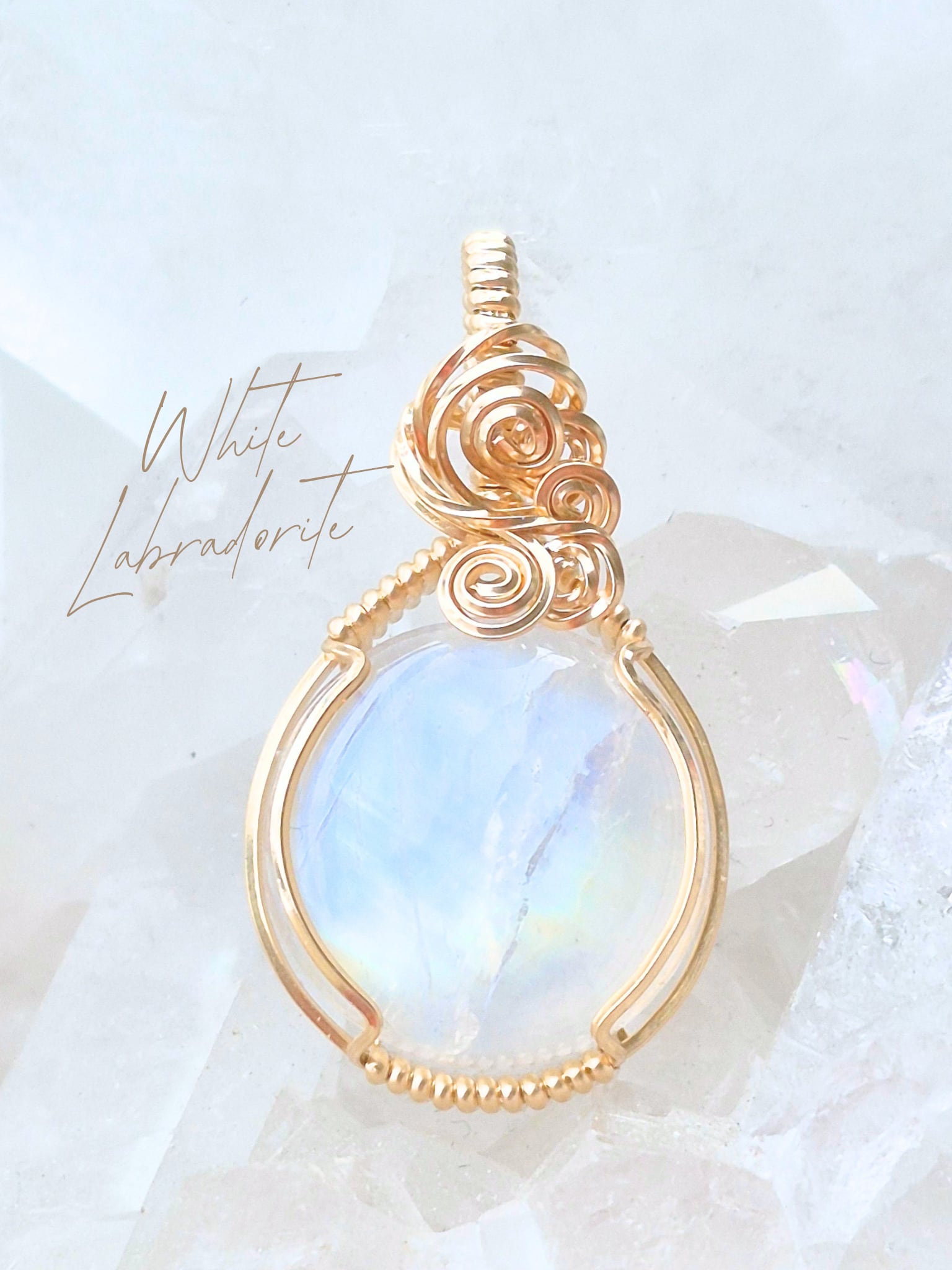 天然石のホワイトラブラドライトを14KGF